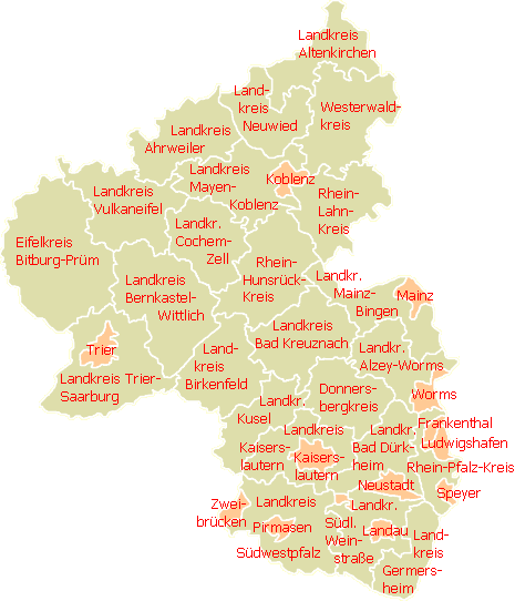 Alphabetische Auflistung der Landkreise und kreisfreien Städte in Rheinland-Pfalz: