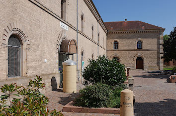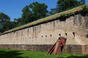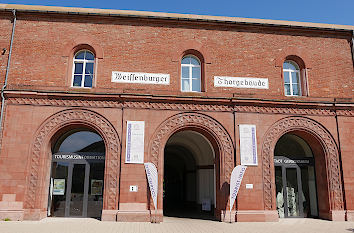 Galerie verschiebbare Bilder Ludwigstor mit Festungsmuseum - Zeughaus mit Deutschem Straßenmuseum - Festungsmauer - Arrestgebäude - Kasernen - Luitpoldplatz und Paradeplatz mit Bayerischen Löwen - Weißenburger Tor und Graben an der Fronte Lamotte - Festungsmauern Fronte Beckers mit Tor und Musikschule - weiter » Jahrhundertelang gab es zwischen Frankreich und den am Rhein liegenden Staaten des Heiligen Römischen Reiches regelmäßig Spannungen und Kriege, weshalb im 19. und 20. Jahrhundert propagandistisch von der deutsch-französischen Erbfeindschaft geredet wurde. Nationaler Art waren die Ursachen für die Kriege allerdings nie, zumal Deutschland ja erst seit 1871 existiert. Die Kriege gab es nämlich immer aus ganz anderen Gründen. Doch die Angst vor französischen Überfällen war natürlich real. Nach dem Sieg über Napoleon und der staatlichen Neuordnung beim Wiener Kongress entstand deshalb die Idee einer militärischen Befestigung der am westlichen Rheinufer liegenden Stadt Germersheim. Das wurde dann ab 1834 auch in die Tat umgesetzt. Rund um die gesamte Stadt entstanden mit Kanonen bestückte Wälle. So sollten die Staaten des Deutschen Bundes von Germersheim aus geschützt werden, das damals noch zu Bayern gehörte. Heute sind von der Festung noch ungewöhnlich viele Teile vorhanden, obwohl die Anlagen nach dem Ersten Weltkrieg durch Abriss und Sprengung geschleift wurden. Der etwa drei Stunden dauernde Spaziergang auf dem sechs Kilometer langen Festungsrundweg entlang der alten Mauern, Wälle und Kasernengebäude ist deshalb sehr reizvoll. Besonders sehenswert sind hierbei das als Wahrzeichen bezeichnete Weißenburger Tor, der Festungspark Fronte Lamotte, das Ludwigstor mit dem Stadt- und Festungsmuseum, das Zeughaus mit dem Deutschen Straßenmuseum, die Fronte Beckers, die Seysselkaserne und das einstige Arrestgebäude. Allerdings sind die Ausschilderungen nicht optimal, sodass der Weg von der Fronte Lamotte über den Wasserturm zur Fronte Beckers nicht einfach zu finden war. Anderseits wurden an einigen Stellen Stadtpläne mit dem eingezeichneten Festungsrundweg angebracht, die man am besten abfotografiert. Spannend ist außerdem der Besuch des Deutschen Straßenmuseums mit seinen Modellen, Originalen und Nachbauten von historischen Geräten, Fahrzeugen und Maschinen für den Straßenbau. Warum aber das eigentliche Festungsmuseum nur wenige Tage im Monat geöffnet hat und an anderen Tagen nur nach Voranmeldung, haben wir allerdings nicht herausgefunden. Stattdessen kann aber auch in der Stadtinformation im Weißenburger Tor eine kleine Ausstellung zur Festungsgeschichte besichtigt werden. SouvenirDB TicketsHotels in Germersheim: