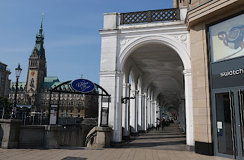 Galerie verschiebbare Bilder Gegenüber des Rathausplatzes verzieren die 1843 errichteten Alsterarkaden die Uferpromenade der Kleinen Alster. Die Arkaden sind im italienischen Stil ausgeführt und führen vom Jungfernsteg an der Binnenalster bis zur Rathausschleuse. Besonders faszinierend ist auch die von der Promenade abzweigende Mellin-Passage mit ihren dekorativen Jugendstilmalereien, die zu den ältesten noch erhaltenen Einkaufspassagen in Deutschland gehört. Silvester 2025/Bilder von Sehenswürdigkeiten in Hamburg mit touristischen Informationen:Weitere Informationen über Hamburg im Internet: