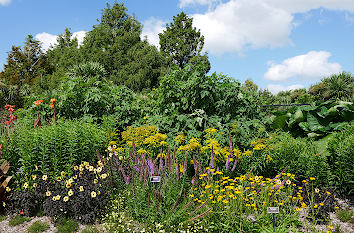 Zu den vielen unterschiedlichen Themengärten gehören aber auch Bereiche mit Blumen, die vorwiegend aus den gemäßigten Zonen stammen und somit auch bei uns wachsen.